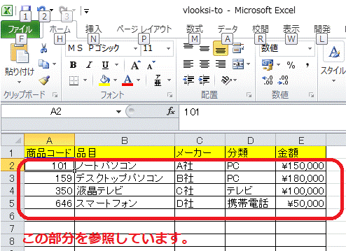 商品リストという別シートを参照しています。